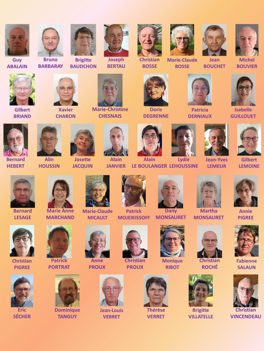 Ce trombinoscope contient l'ensemble des animateurs de la Retraite Sportive Bainaise, classés par ordre alphabétique.